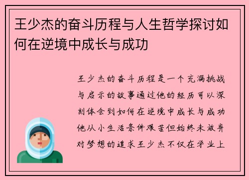 王少杰的奋斗历程与人生哲学探讨如何在逆境中成长与成功
